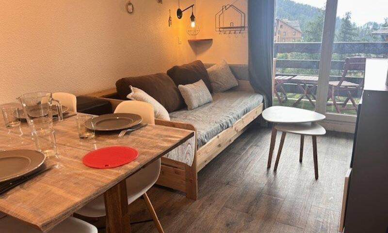 Situé sur le haut de la station et proche des pistes, l'appartement est composé dans l'entrée de deux lits superposés, au séjour d'un lit gigogne et dans une cabine, d'un lit double.