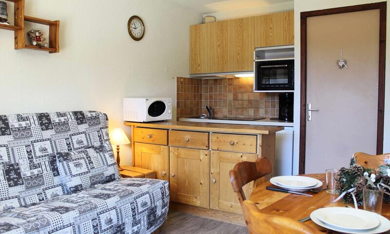 L'appartement avec balcon Sud se compose, d'un coin cuisine équipée, d'un séjour avec  un canapé convertible deux places, d'un coin montagne avec deux lits superposés une place (séparation avec porte), d'une salle de bains avec baignoire et d'un WC indépendant.