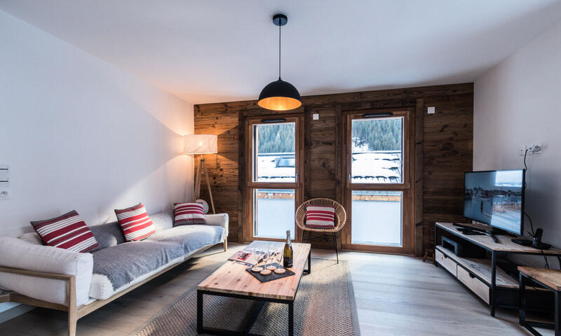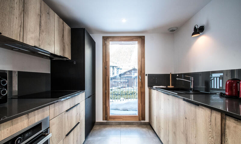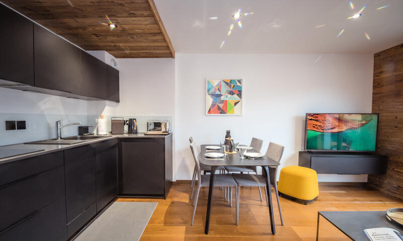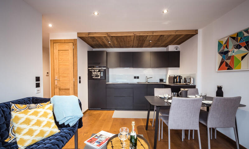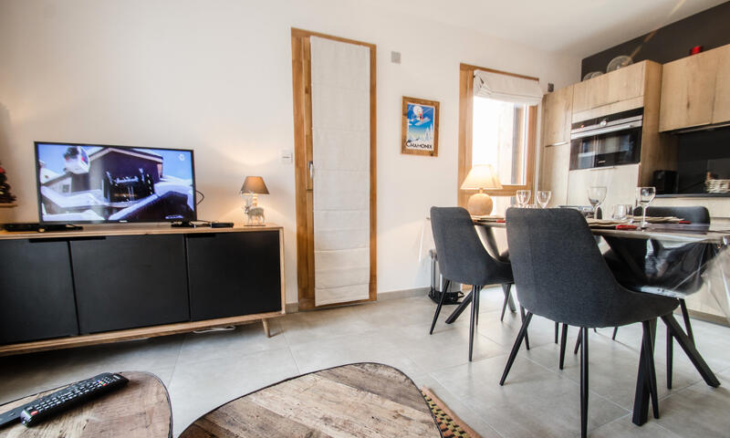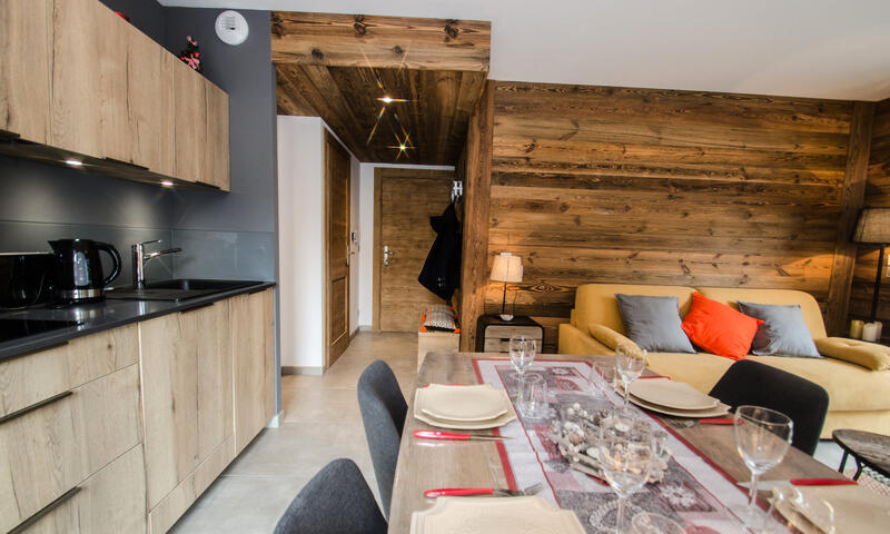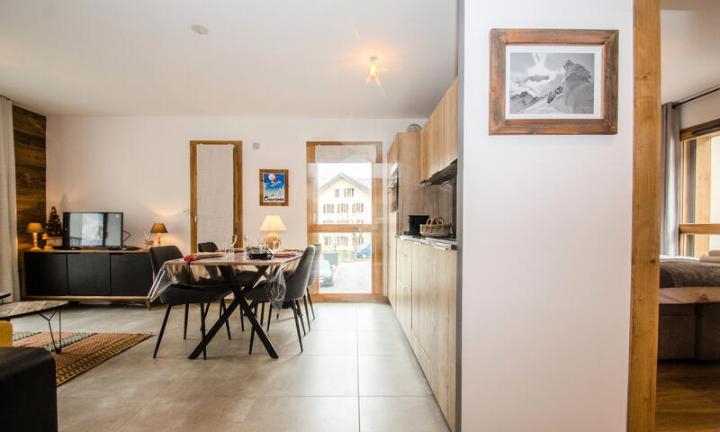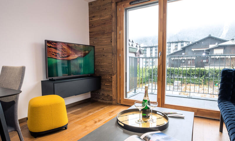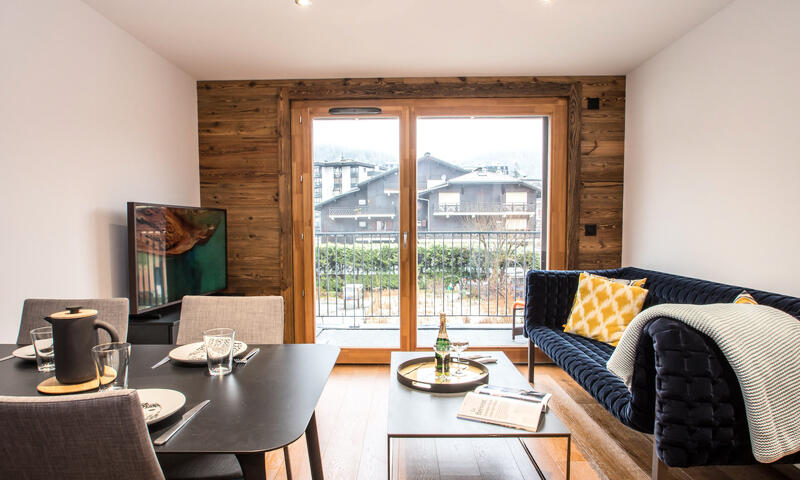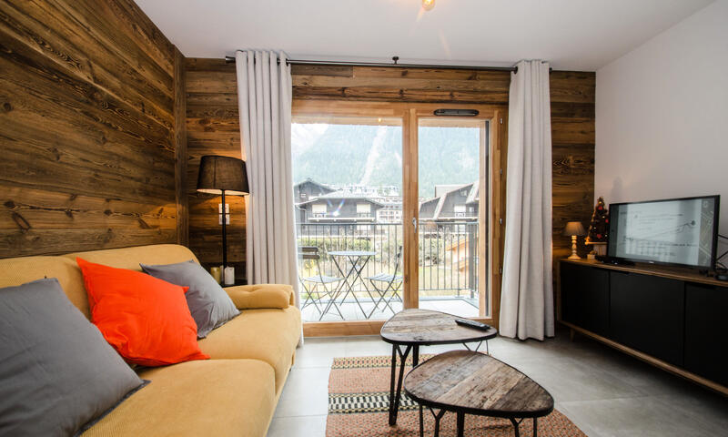 Bel appartement neuf de 35m², classé 3 étoiles, pour 2 personnes, situé au 1er étage sans ascenseur d'une résidence neuve et calme (Androsace du Lyret), située au centre de Chamonix, dans le quartier du Lyret.