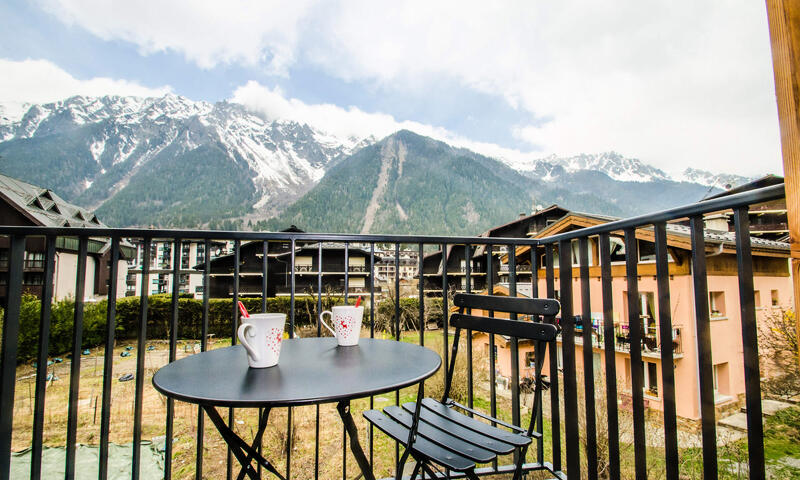 - Balcon équipé d'une petite table avec 2 tabourets - vue sur le Brévent