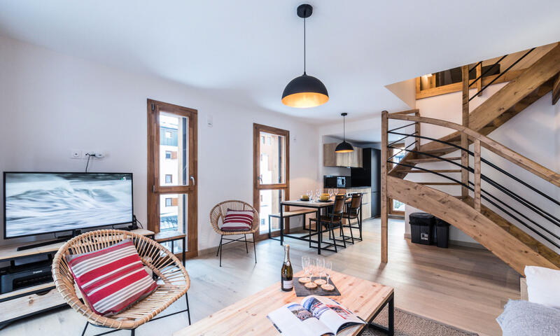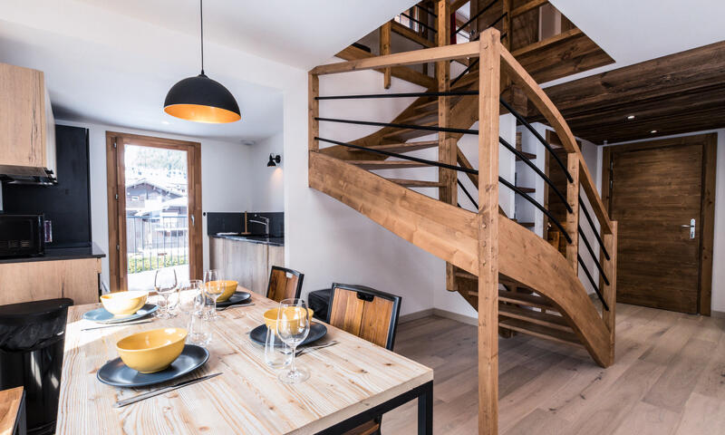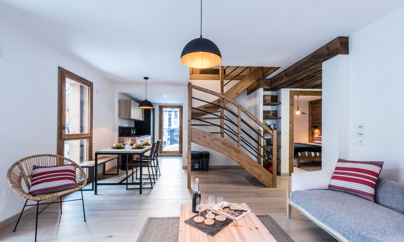 Superbe appartement de 74m², classé 3 étoiles, en duplex, pour 6 personnes, situé au 2ème étage sans ascenseur d'une résidence neuve et calme (Androsace du Lyret), au centre de Chamonix, dans le quartier du Lyret.