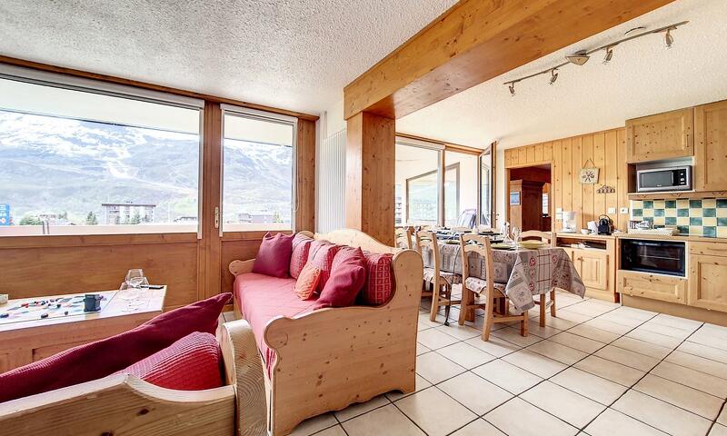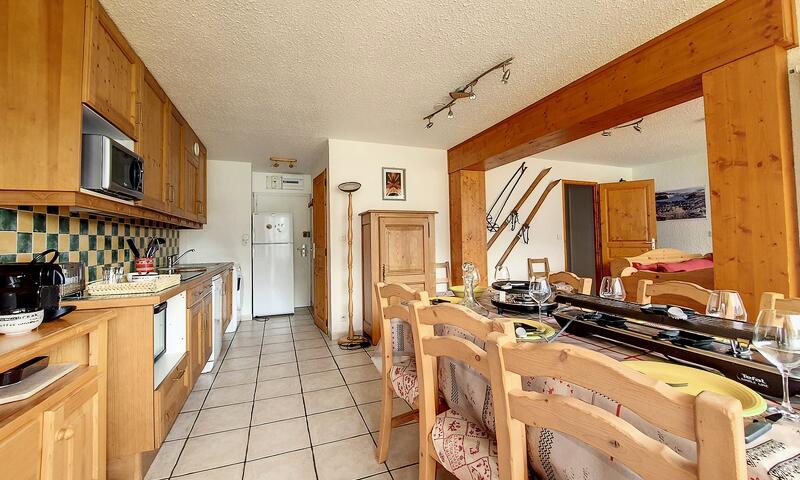 Appartement de 3 pièces dont 2 chambres, d'une surface totale de 50m² pour 8 personnes. Il est situé au 2ème étage d'une résidence skis aux pieds, au coeur de la station, et possède un grand balcon orienté Sud.