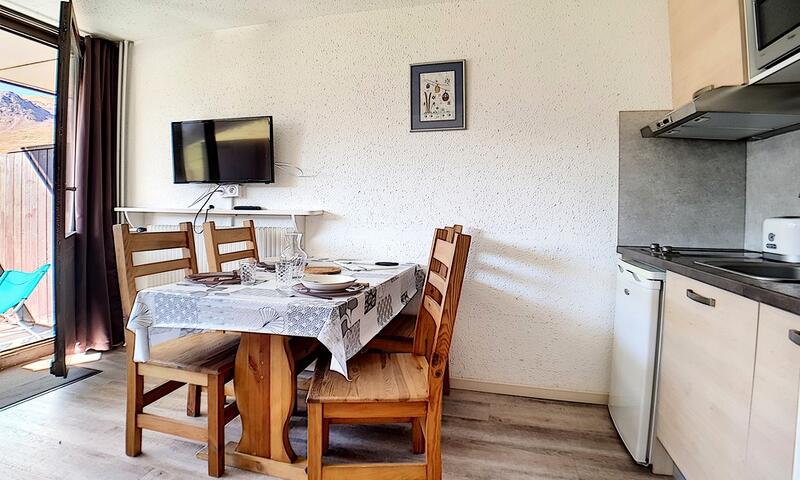 Beau studio entièrement rénové, d'une surface de 20m² pour 4 personnes. Situé au 6e étage d'une résidence proche du départ des remontées mécaniques et du point de départ ESF, il possède 1 balcon orienté Sud.