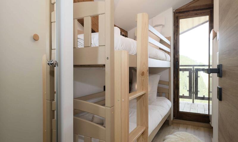 Superbe appartement entièrement neuf, soigneusement décoré, et situé au dernier étage d'une résidence aux pieds des pistes. Il offre une magnifique vue sur la vallée et les montagnes environnantes.