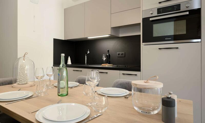 Appartement neuf avec une décoration moderne et épurée, dans une résidence aux pieds des pistes. Idéal pour vos vacances en famille !