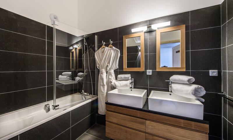 - Une salle de bain avec baignoire, double vasques