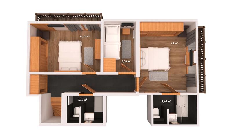 Magnifique appartement T5 en duplex situé au 3ème étage de la Résidence ASPEN LODGE, bâtiment A, dans le centre de Courchevel Moriond.