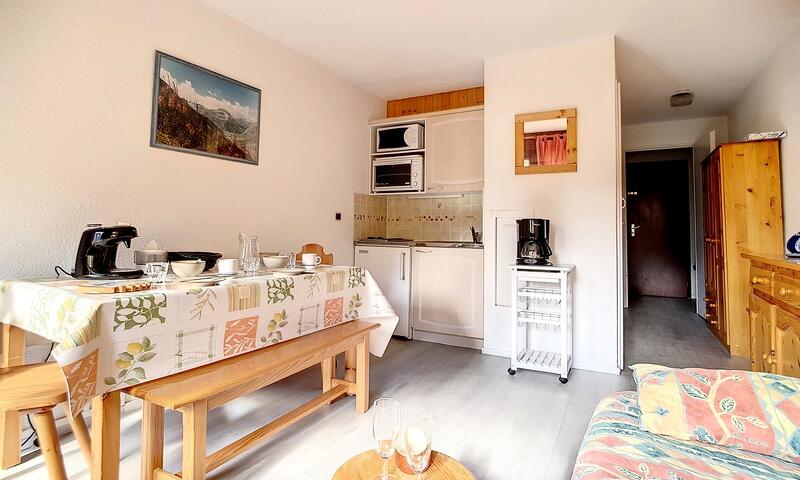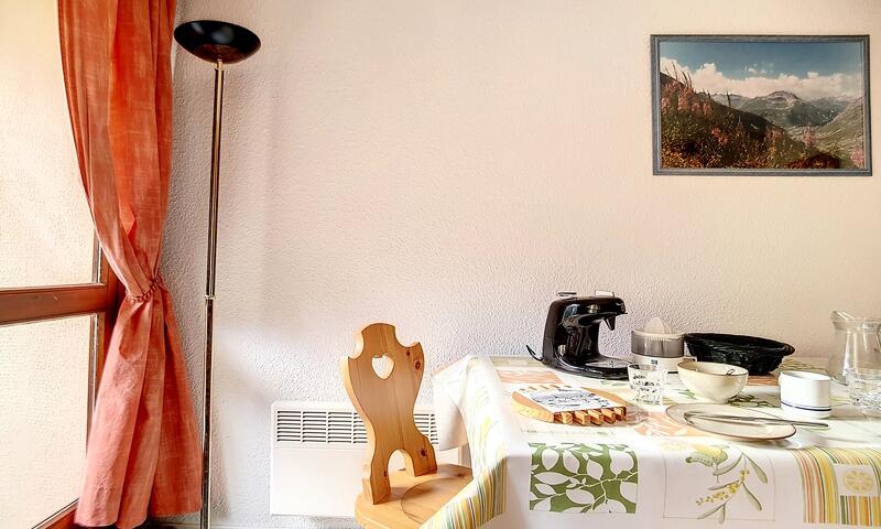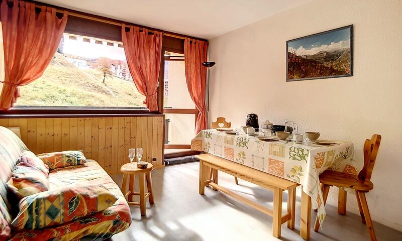 Studio cabine partiellement rénové de 24m² pour 4 personnes. Cet appartement très agréable et lumineux possède un balcon Sud offrant une vue dégagée sur les pistes de ski. Il est situé au niveau 2 du bâtiment et possède des volets roulants électriques.