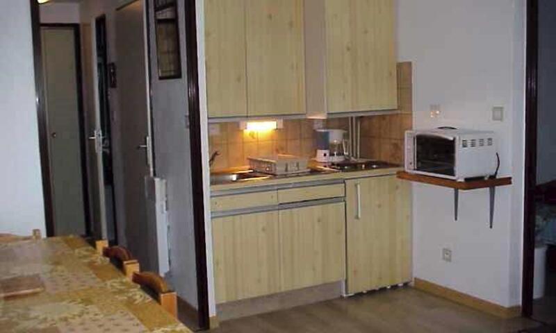 Au coeur du village, dans la résidence AURETTE avec ascenseur, appartement pour 4 personnes composé : Séjour avec canapé, tv et kitchenette équipée 2 plaques, évier, frigo, mini-four, rangements donnant sur loggia Est.