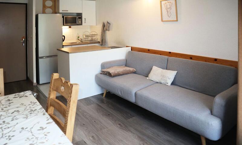 Joli studio équipé pour 4/6 personnes au 2ème étage de la résidence avec ascenseur, idéalement situé au départ des pistes au cœur de la station, comprenant, une entrée avec 1 banquette lit 2 places, un coin montagne avec 2 lits superposés 1 place, un séjour avec 1 banquette convertible bz 2 places, un coin cuisine équipé et ouvert sur le séjour, une salle de bains et wc séparés. Balcon offrant une vue sur la patinoire.