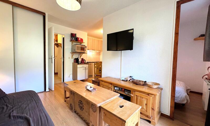 Les Balcons d'olympie (N°13), 2 pièces cabine rénové style montagne pour 4 pers, 30m², au rez de chaussée, balcon exposé Sud/Ouest, vue pistes, Croisette reliée par télébenne jusqu'à 23h (gratuit)