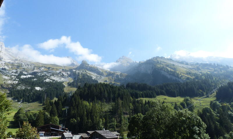 - Séjour  (15.69m²) : Canapé rapido 2 pers (140) couverture, baie et porte-fenêtre sur balcon sud ouest avec vue montagne et parking, TELEVISION,