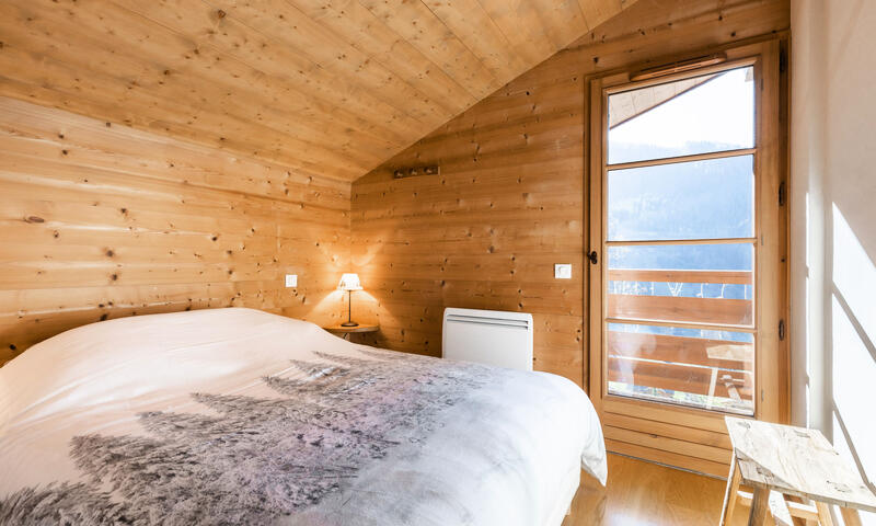 - CHAMBRE (8.51 m²) : 1 LIT 2 PLACES (160), porte-fenêtre, accès balcon sud, vue route des Confins / impasse de la Chavonette / montagne