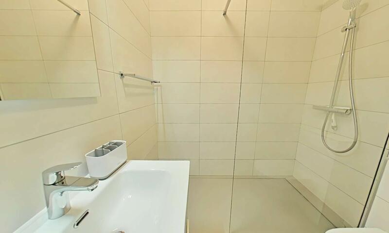 Cet appartement de vacances situé au 3ème étage, comprend un séjour avec télévision, cheminée décorative uniquement et canapé d'agrément, un coin cuisine équipé avec lave-vaisselle, un WC séparé avec un lavabo. A  l'étage, un coin nuit avec deux lits superposés, deux chambres avec deux lits simples chacune, une salle d'eau avec lave-linge, sèche-linge et WC.