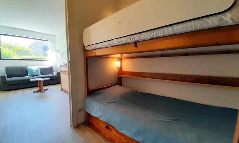 - Entrée cabine avec 2 lits individuels superposés (80, couettes) et rangements