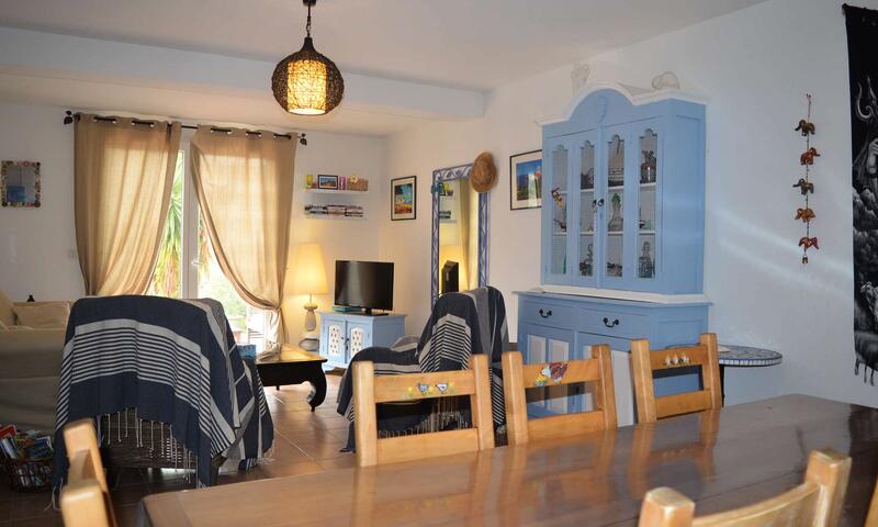 Dans le quartier du Puig Del Mas, à 3 minutes du centre ville et de la plage, cette belle maison 3 faces sur 3 niveaux offre de très belles prestations. La maison se compose en rez-de-jardin, d'une cuisine équipée ouverte sur un spacieux séjour, aux niveaux supérieurs 2 grandes chambres avec chacune une salle de bain et des wc, une terrasse avec salon de jardin, chaises longues et barbecue. Le jardin est arboré et décoré avec de nombreuses plantes méditerranéennes. Ménage de fin de séjour inclus. Draps, linge de toilette non inclus, à réserver auprès de l'agence 10 jours avant votre arrivée.