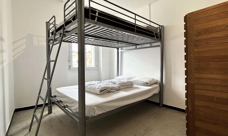 Cet appartement de vacances, situé au 2ème étage, se compose d'un séjour avec un clic clac, un coin cuisine aménagé, une chambre avec 1 lit double en mezzanine, une salle d'eau avec douche et 1 WC indépendant. Logement non équipé de télévision.