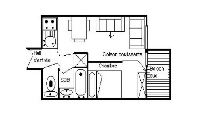Il est situé au 5ème étage (talus), exposé Sud-Est sans balcon. Accès par l'entrée D (place des Bouquetins).