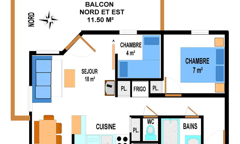 Séjour : Banquette gigogne 2 lits 1 place ou 1 lit 2 places et 1 banquette 1 place.