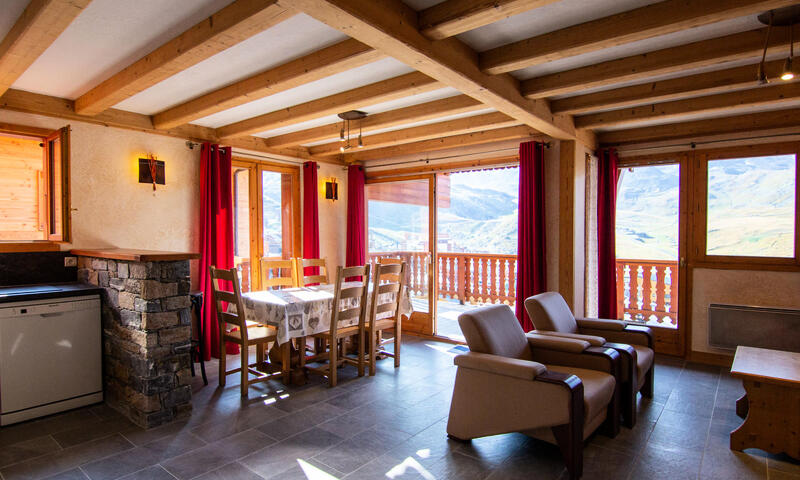 Le chalet Bouquetin est situé dans le quartier calme des Balcons, à 10 minutes à pied du cœur de la station, bénéficiant d'une vue dominante sur Val Thorens et ses montagnes, exposé plein sud.