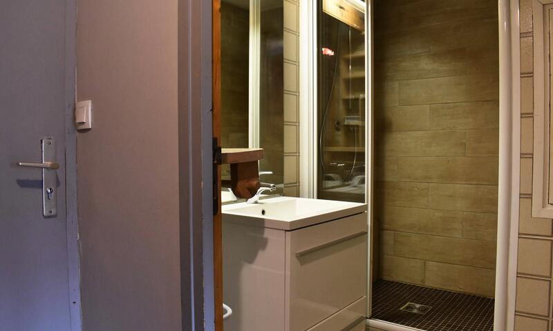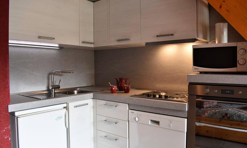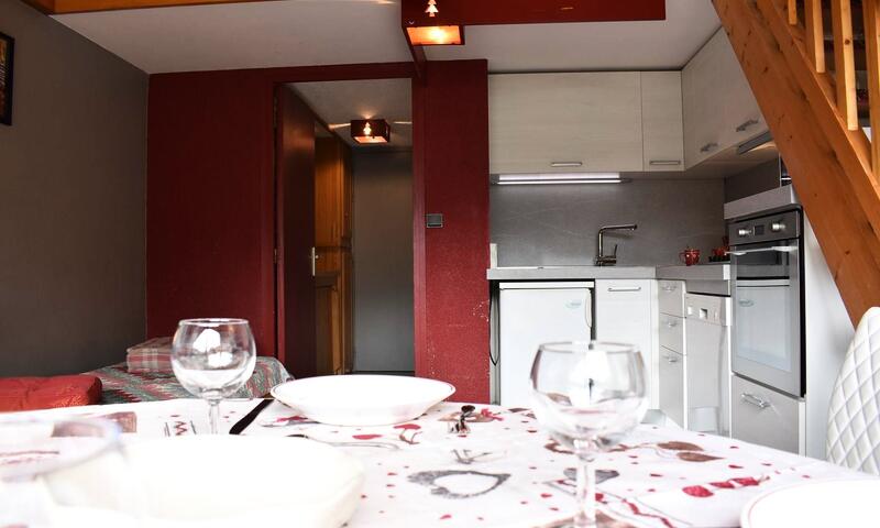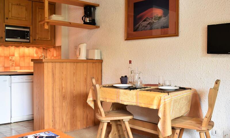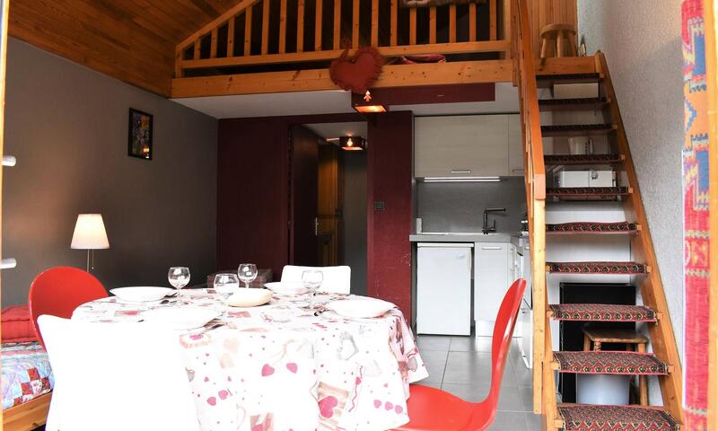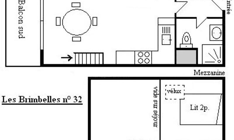 Cet appartement à la montagne situé au 6ème étage, avec ascenseur, comprend une cuisine équipée ouverte sur un séjour avec un coin repas, 1 lit 1 personne (80x190) et 1 ensemble de lits gigognes relevables (80x190)avec un balcon Sud, une salle d'eau avec un WC. L'étage comprend une mezzanine soupentée exposée Sud avec 1 lit bas 2 personnes (160x190) et un coin lavabo. Il est nécessaire de monter 1 étage à pied en sortant de l'ascenseur pour accéder à l'appartement.