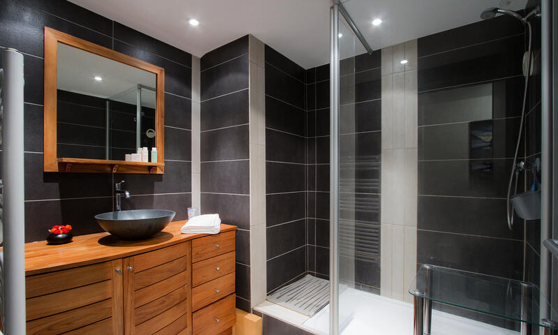 Salle d'eau avec douche à l'italienne et toilettes séparées.