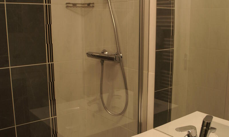 Salle de bain avec douche, lavabo et WC. Ce bien est équipé d'une cafetière à filtre mais n'a pas d'appareil à raclette.
