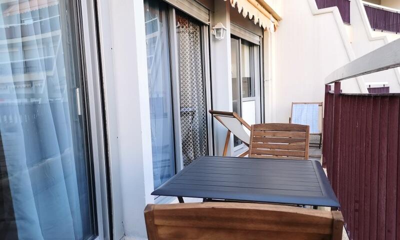 Le logement : Cet appartement de vacances situé au premier étage de la résidence Les Cannes Marinas se compose d'une entrée, une cuisine indépendante équipée, d'une salle de douche avec wc séparé,  une chambre avec un lit double ouverte sur un séjour climatisé, canapé convertible, coin repas, ouvert sur une terrasse.
