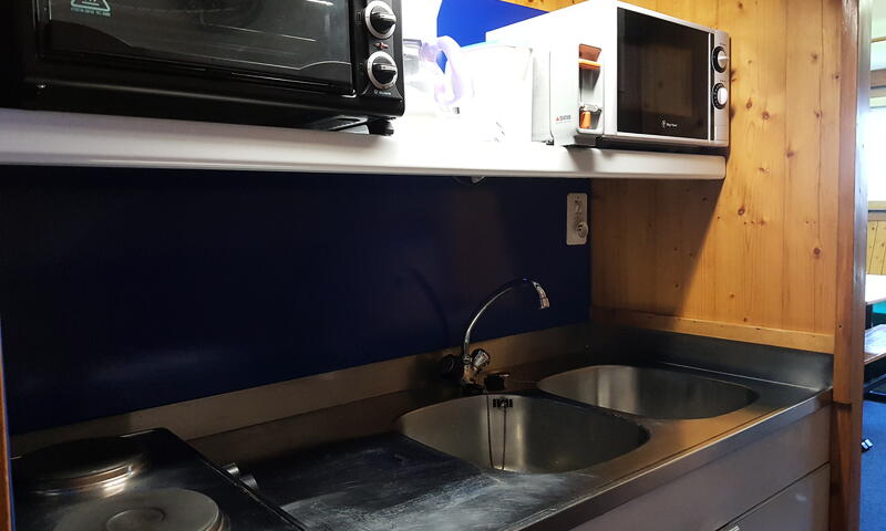 Il est équipé de plaques électriques, un four micro-ondes et un réfrigérateur