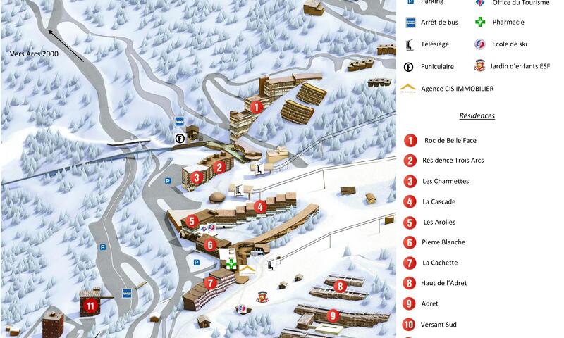 Cette résidence typique d'Arc 1600 est idéalement située au pied des pistes et des remontées mécaniques et à 2 pas du centre station avec ses commerces et restaurants.