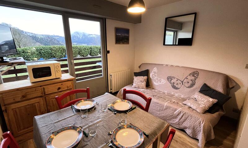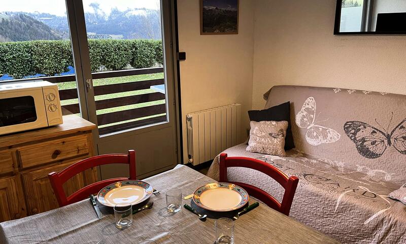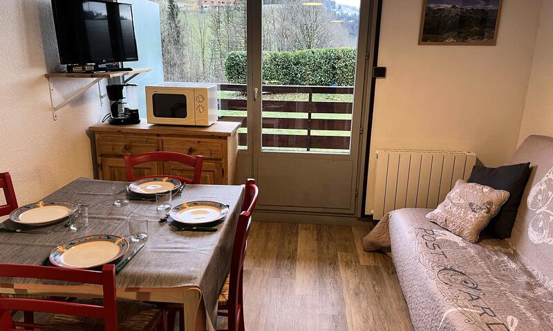 Cet appartement de vacances situé au RDC , se compose d'une entrée coin nuit équipé d'un lit 2 personnes , un coin nuit avec 2 lits superposés, un séjour avec un canapé d'agrément et télévision, une kitchenette équipée, une salle d'eau neuve et un WC séparé. Balcon Sud avec vue magnifique sur le domaine skiable et sur la Chaîne des Aravis, casier à ski et parking collectif privé à la résidence. Arrêt navette au pied de la Résidence.