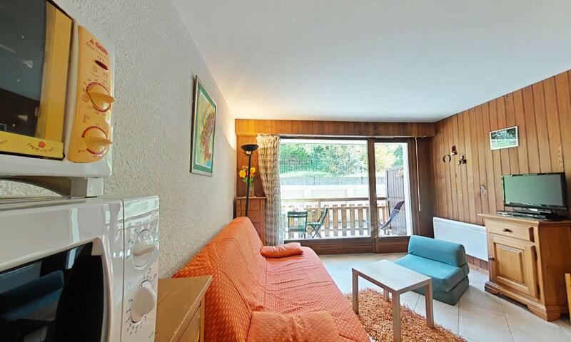 Cet appartement de vacances situé au rez de chaussée, comprend un séjour avec un canapé convertible 2 personnes et télévision,un balcon sud avec vue sur la Colombière et en partie sur les pistes, un coin cuisine équipé,une alcôve avec 2 lits superposés, une  salle de bain avec WC.