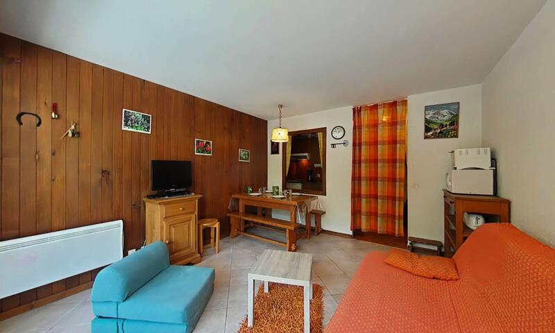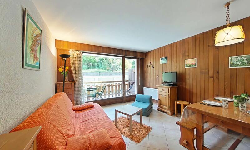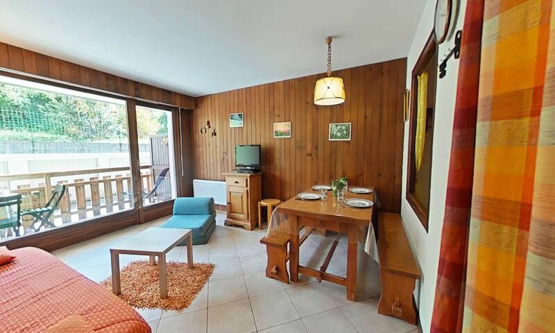 Cet appartement de vacances en rez de chaussée, comprend un séjour avec un canapé convertible 2 personnes et télévision avec accès balcon Sud avec vue sur la Colombière, un coin cuisine équipé avec lave-vaisselle, une cabine avec 2 lits superposés, une salle de bain avec WC. Pas de réseau WIFI