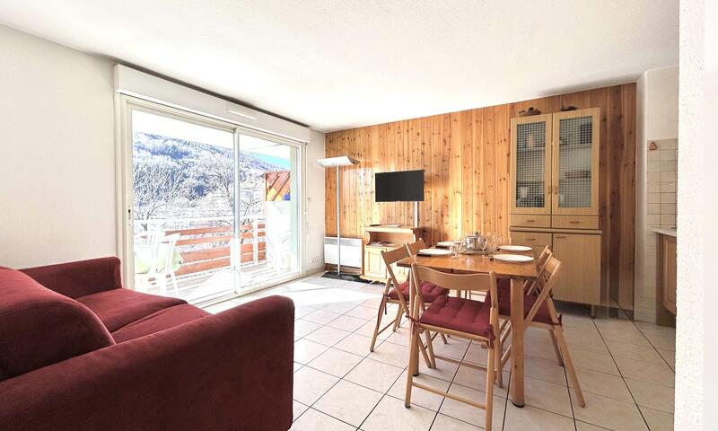 Il se compose d'un séjour et coin cuisine avec four-grill, cafetière électrique, lave-vaisselle... donnant accès au balcon exposé ouest avec vue imprenable sur le mont Prorel, d'une salle de douche et wc, d'une chambre avec lit double 140x190.