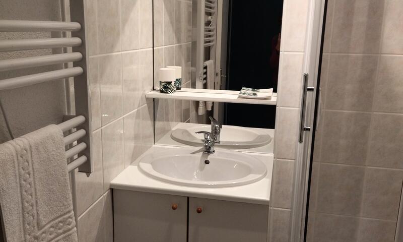 Salle de bain avec douche, lavabo, sèche-serviette et WC. Ce bien est équipé d'une cafetière à filtre mais ne dispose pas d'appareil à raclette.