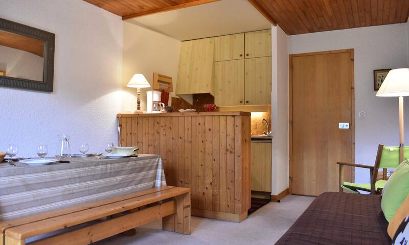 Cet appartement, accessible par ascenseur, se trouve au premier étage de la résidence. Il comprend une cuisine équipée ouverte sur le séjour avec ensemble de lits gigognes relevables et une télévision avec lecteur DVD intégré, une chambre avec 2 lits simples, une salle de bain et un wc indépendant. Un casier à skis est disponible au niveau de l'entrée de la résidence.