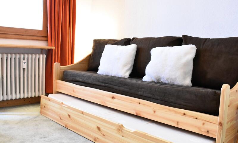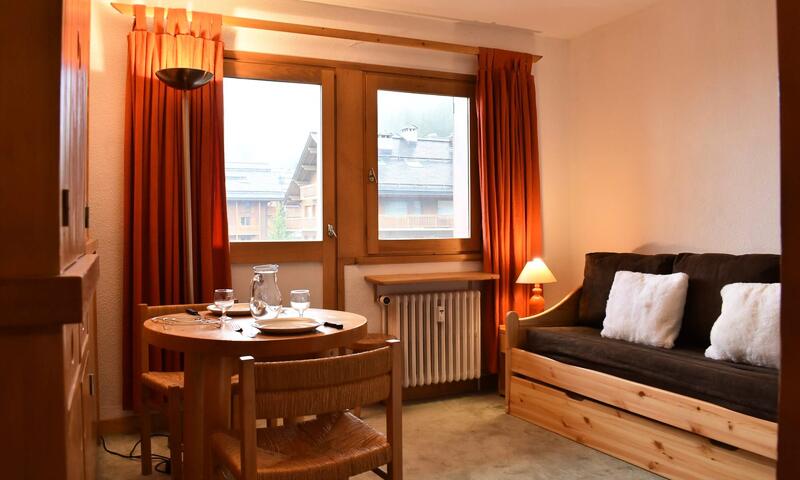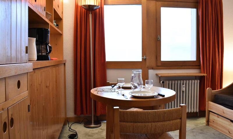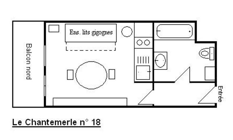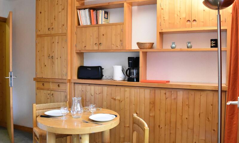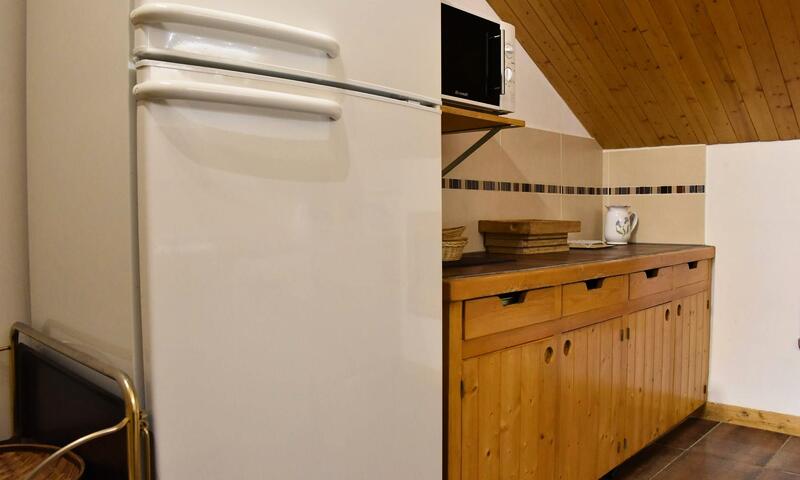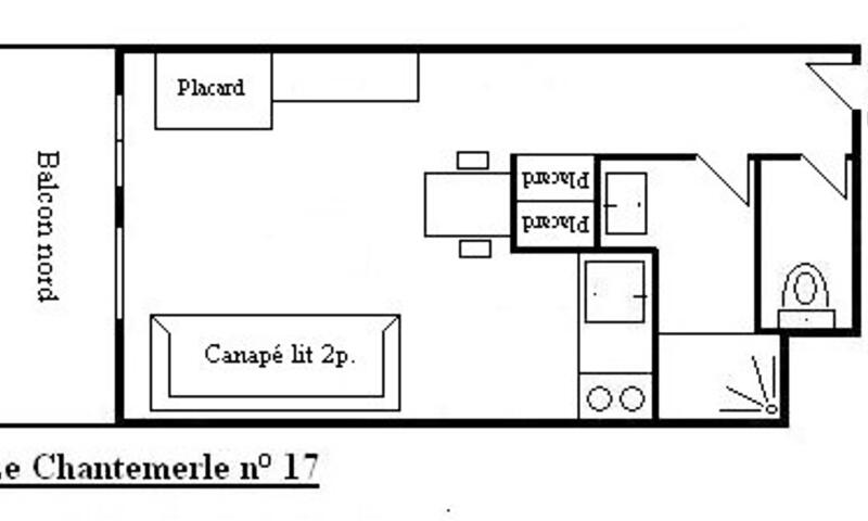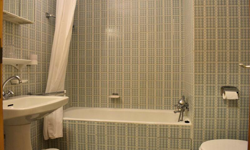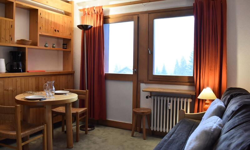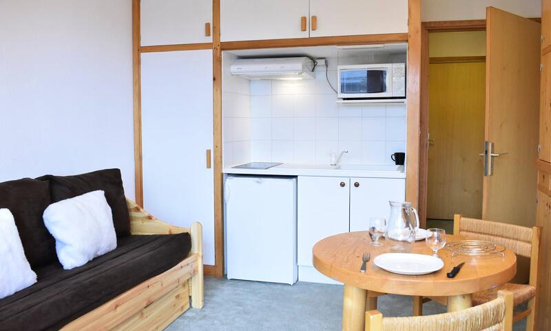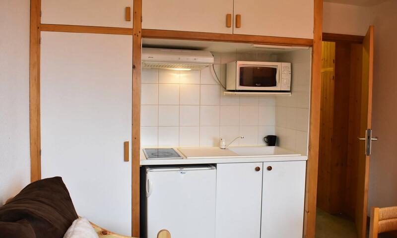 Cet appartement studio à la montagne situé au deuxième étage avec ascenseur, comprend un séjour avec un ensemble de lits gigognes relevables, une petite cuisine, 1 salle de bain avec WC.