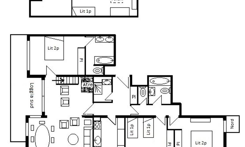 Cet appartement à la montagne situé au quatrième étage avec ascenseur, comprend un séjour avec cheminée et télévision, un balcon loggia orienté au sud, une cuisine équipée, 1 chambre avec lit double en 140x190, et sa salle de bains et wc attenants, 1 chambre 2 lits 1 personne , 1 chambre 1 lit double en 160x190 balcon nord, 1 salle de bain, 1 salle d'eau et un WC indépendant. A  l'étage dans la mezzanine, vous trouverez 3 lits simples.