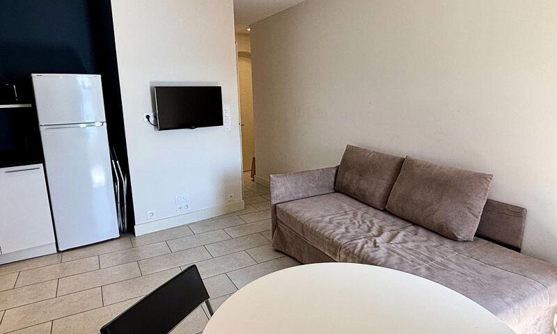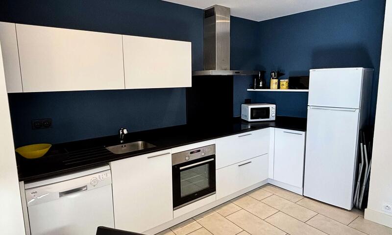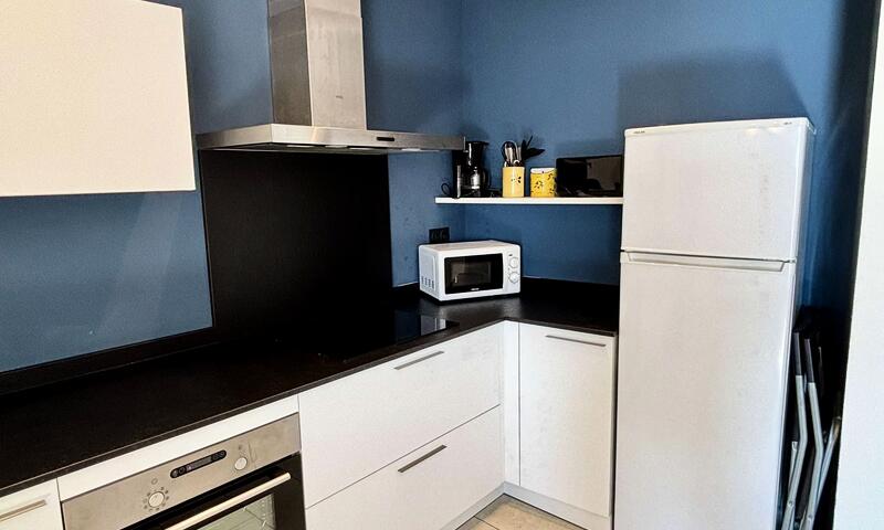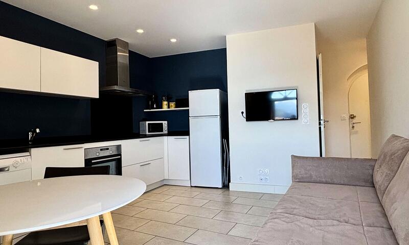 Cet hébergement de vacances se compose d'un séjour avec canapé convertible et cuisine équipée, une salle d'eau et des WC séparés.