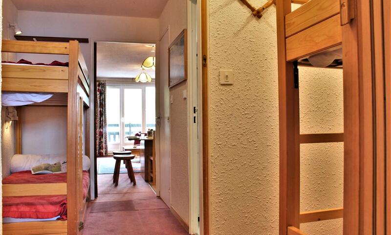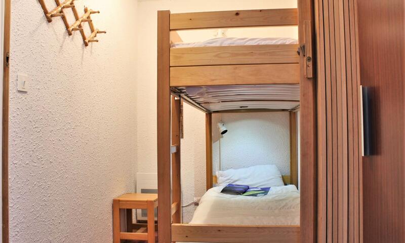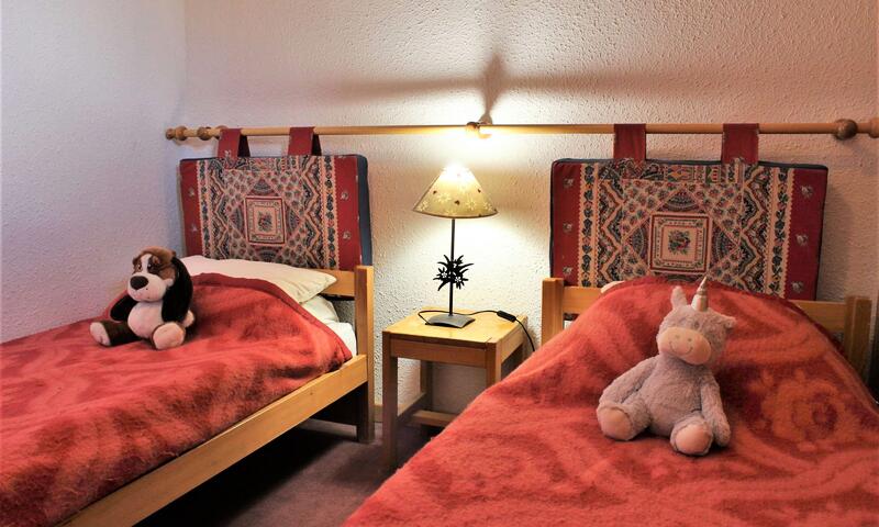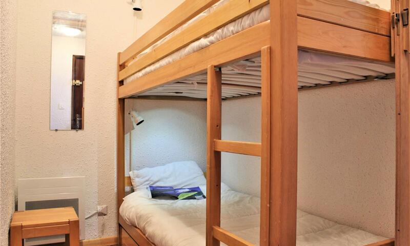 Située au pied des pistes, cet appartement pour 6 personnes s'organise autour d'une chambre avec deux lits jumeaux (en 80x190) qui donne vue sur les pistes. Il y a aussi deux coins nuits dans le couloir / entrée: l'un avec un lit superposé (2 couchages simples en 80x190) et un rideau accordéon en bois qui donne la possibilité de fermer, l'autre avec un deuxième lit superposé (2 couchages simples en 80x190) et une porte de séparation avec le séjour. Il reste un dernier couchage pour 2 personnes dans le séjour sur le canapé BZ.