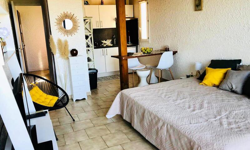 Le studio, en rez-de-chaussée est composé d'une cuisine équipée, d'un salon climatisé avec lit double, d'une salle d'eau, d'un coin nuit avec un lit superposé.