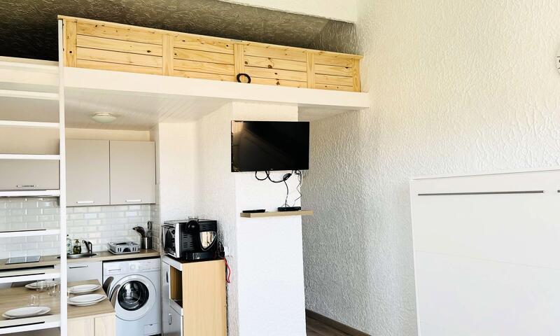 Le studio, au premier et dernier étage est composé d'une cuisine équipée, d'un salon climatisé avec lit double, d'une salle d'eau, d'un coin nuit avec un lit superposé.