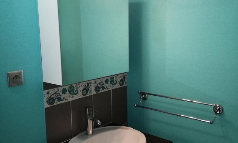 Salle de bain avec douche, lavabo et WC. Ce bien est équipé d'une cafetière à filtreainsi que d'une senséo et dispose d' un appareil à raclette pierrade et fondue.