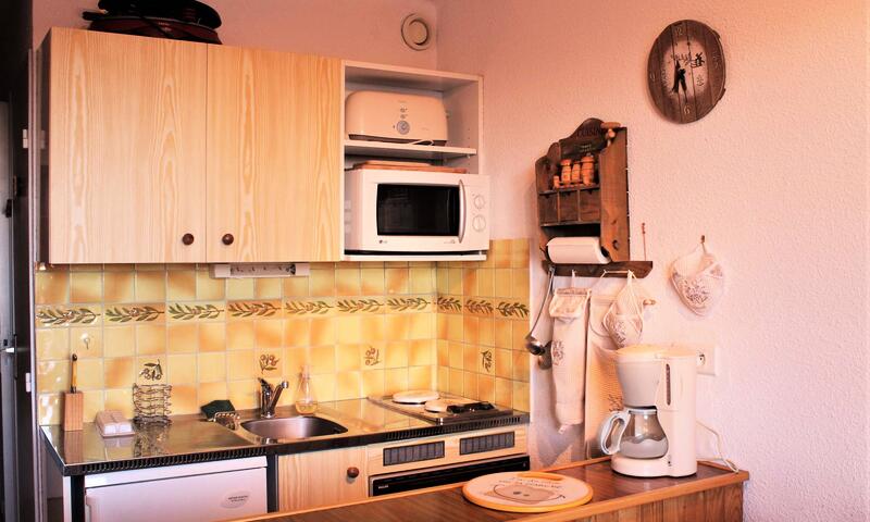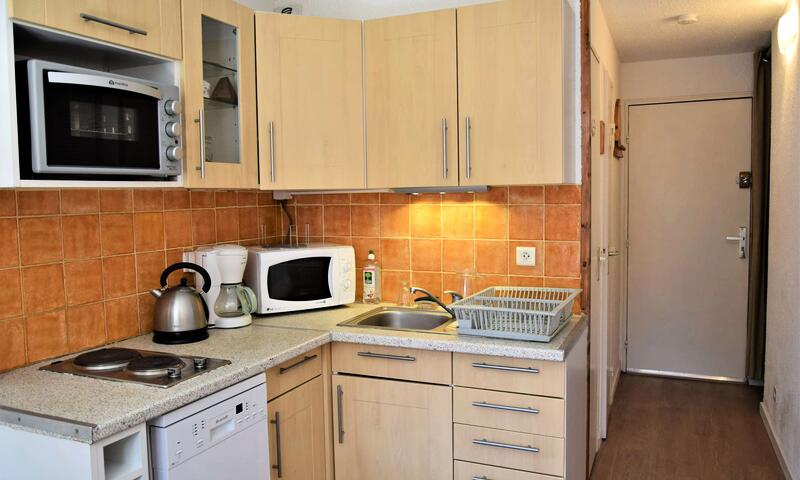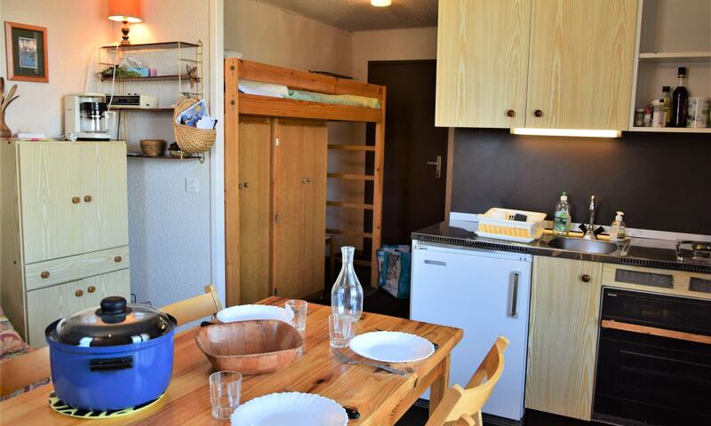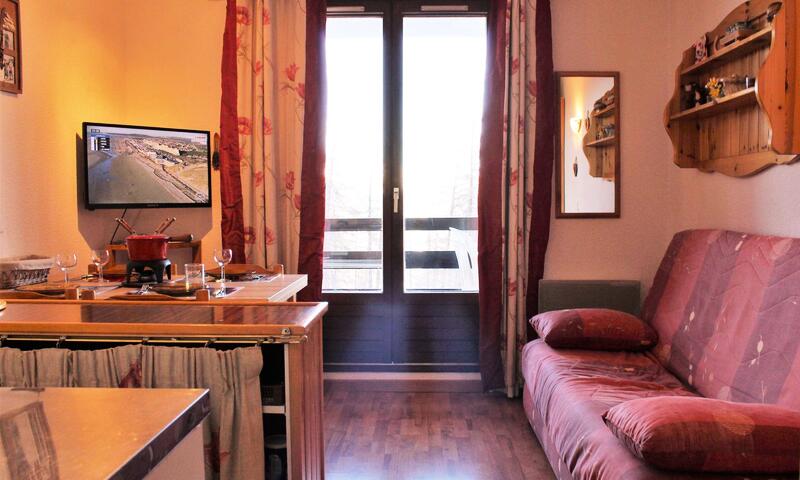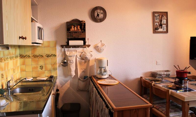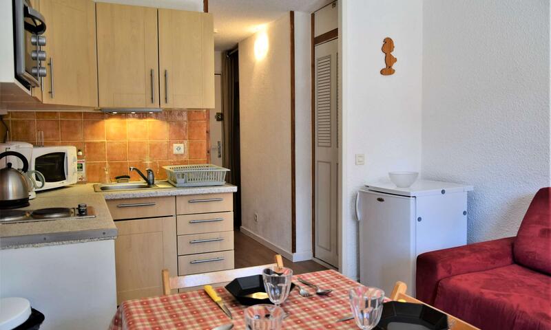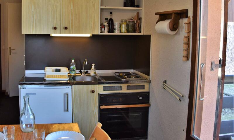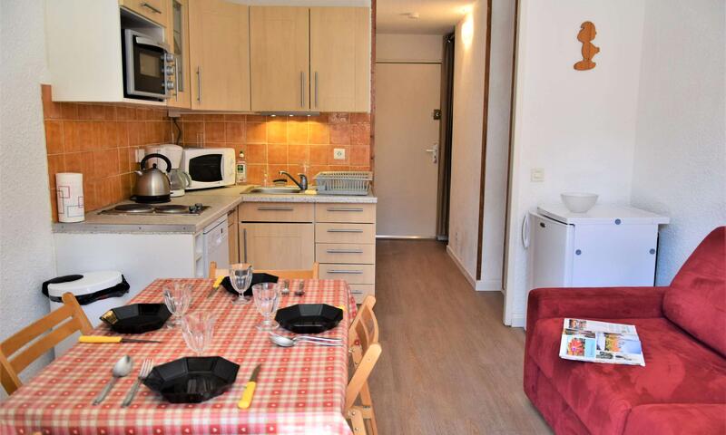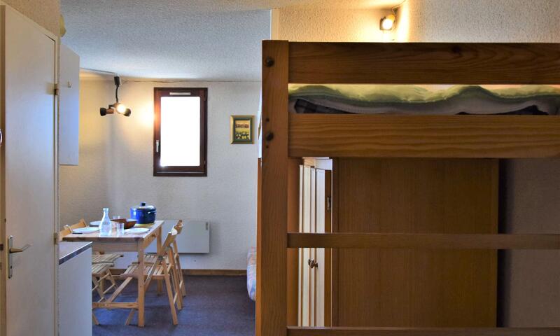 Situé en bas de la station dans une résidence au calme, ce studio est équipé d'un canapé clic-clac deux places dans le séjour, de deux lits superposés à l'entrée séparé par un rideau, d'une cuisine équipée et d'une salle d'eau avec douche et lave-linge. Les WC sont indépendants. L'appartement dispose aussi d'un casier à ski.
