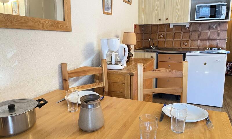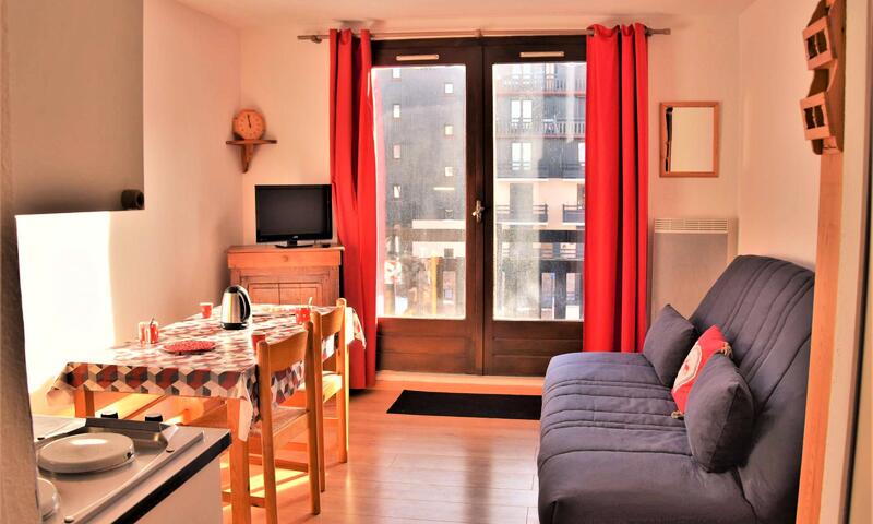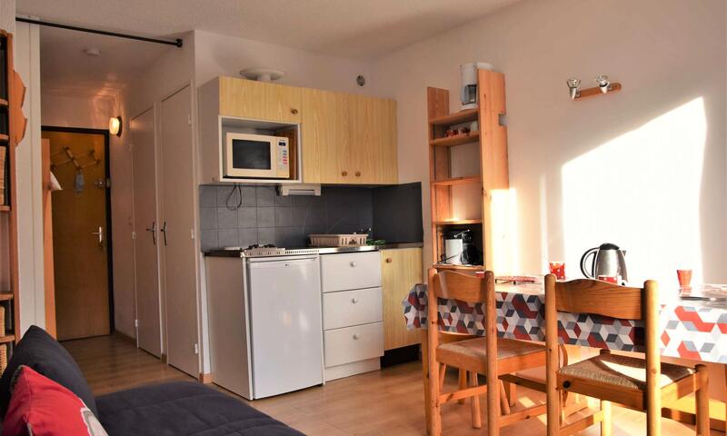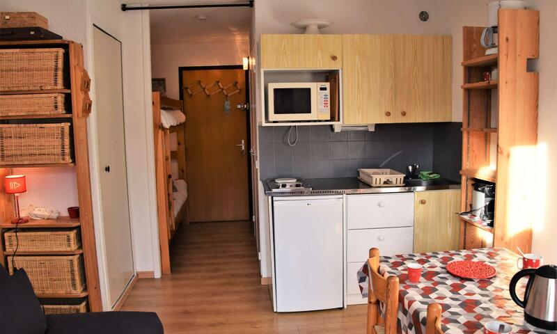 Dans une résidence située en pied de pistes et au centre de la station, cet appartement est agencé de la manière suivante : un coin montagne avec un canapé convertible pour 2 personnes, une salle d'eau avec douche et lavabo, un WC indépendant, une kitchenette ouvrant sur un séjour avec un clic clac pour 2 personnes. L'appartement dispose aussi d'un casier à ski.