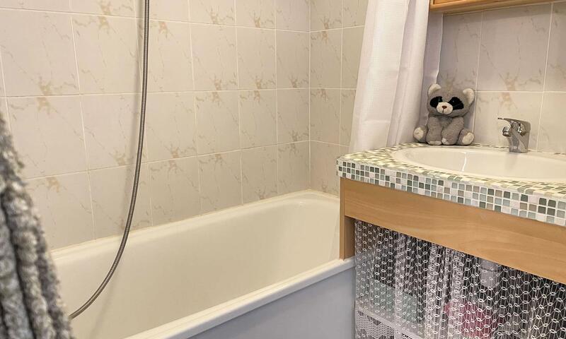 Dans une résidence située en pied de pistes et au centre de la station, cet appartement est agencé de la manière suivante : une entrée avec deux lits superposés, un séjour avec un canapé clic clac deux places, une salle de bain avec baignoire, un wc indépendant et un coin cuisine équipée. L'appartement dispose aussi d'un casier à ski.