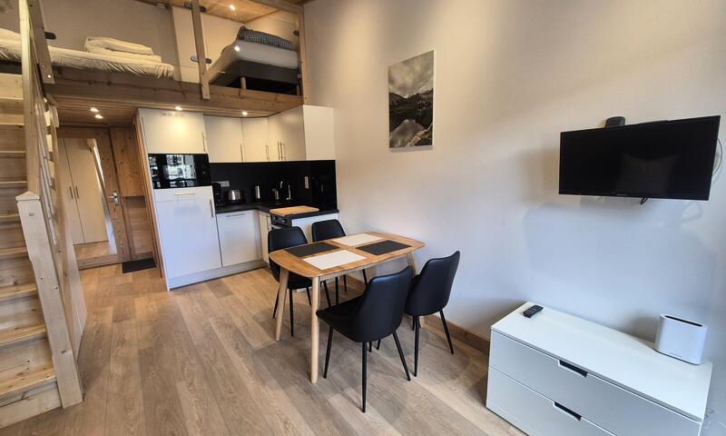 Studio mezzanine rénové de 22m² équipé pour 4 personnes et situé au 2ème étage avec ascenseur de la résidence "Curling B Tour", au centre de Tignes Val Claret.