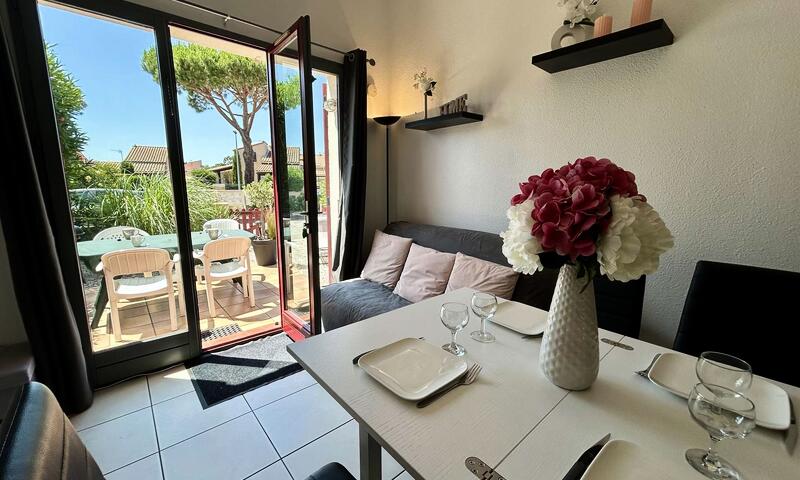 Les Plus de cette location à la mer :climatisation, piscine collective du 15/06 au 15/09 , parking devant le portail, jardinet avec un salon  de jardin et un barbecue d'extérieur, télévision.
