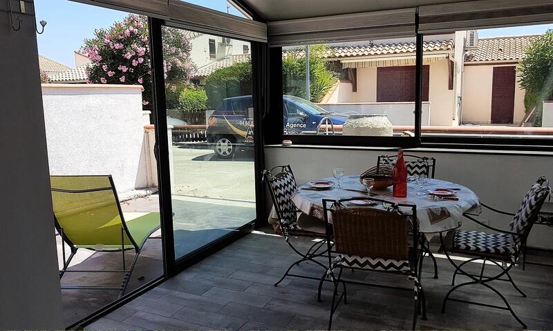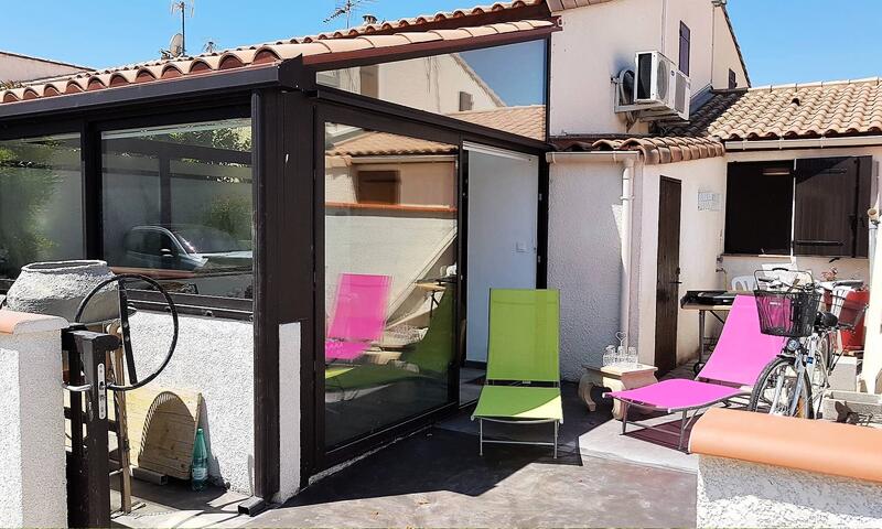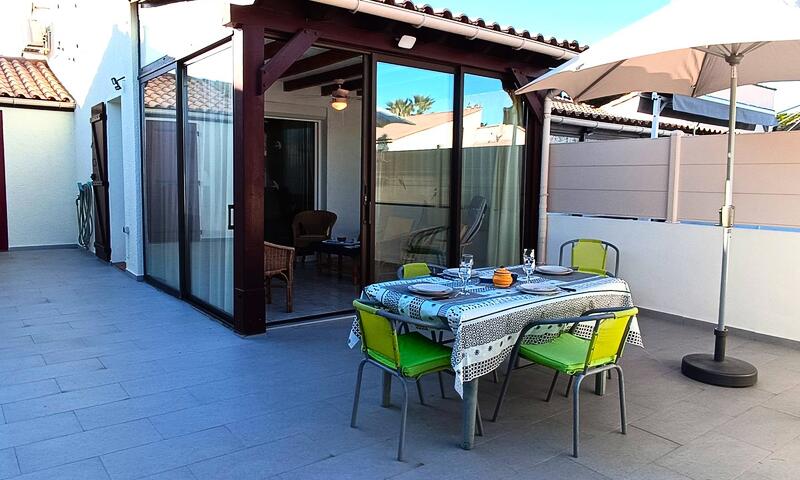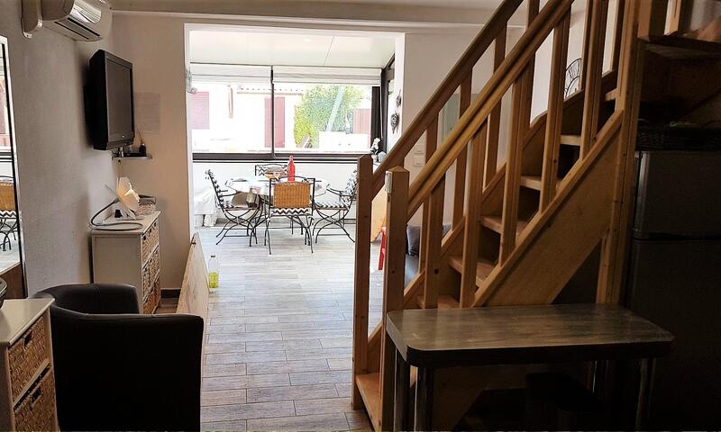 Entrée par la cour idéale pour le farniente avec 2 chaises longues fournis ! AU RDC : une spacieuse véranda, salon avec canapé NON convertible et TV , coin cuisine équipée moderne et fonctionnelle (réfrigérateur/congélateur, lave vaisselle, combiné four/micro ondes,plaque vitro, lave linge...), une salle d'eau avec douche italienne, un W.C indépendant et une chambre avec lit en 140.