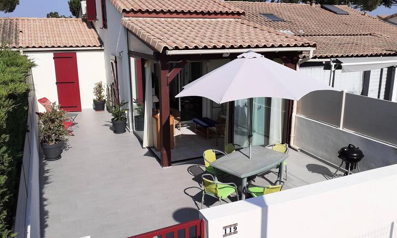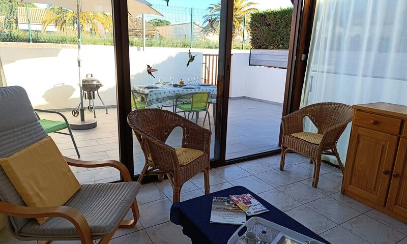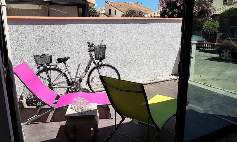 D'une cour avec salon de jardin, chaises longues et barbecue au charbon (SANS vis à vis à deux pas de la piscine de la résidence).